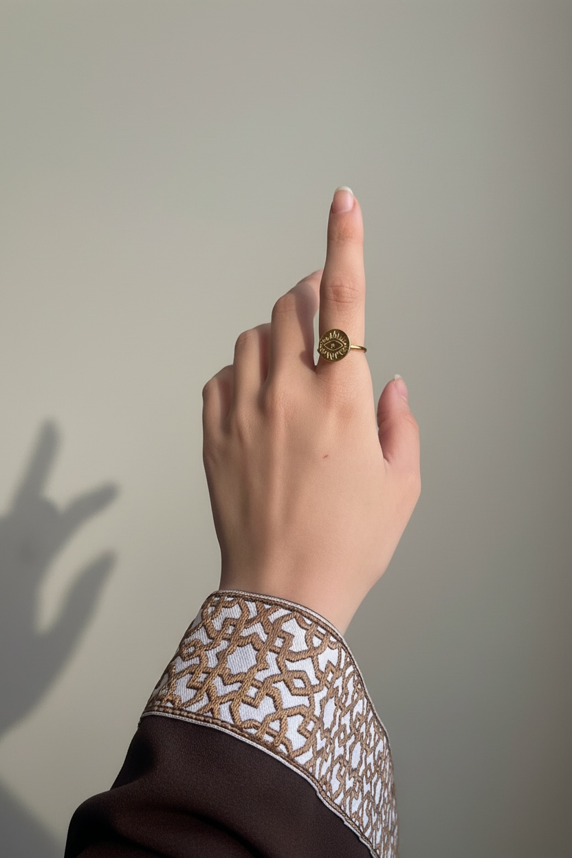 A sun-framed eye design that brings a bold, luminous presence to your hand.